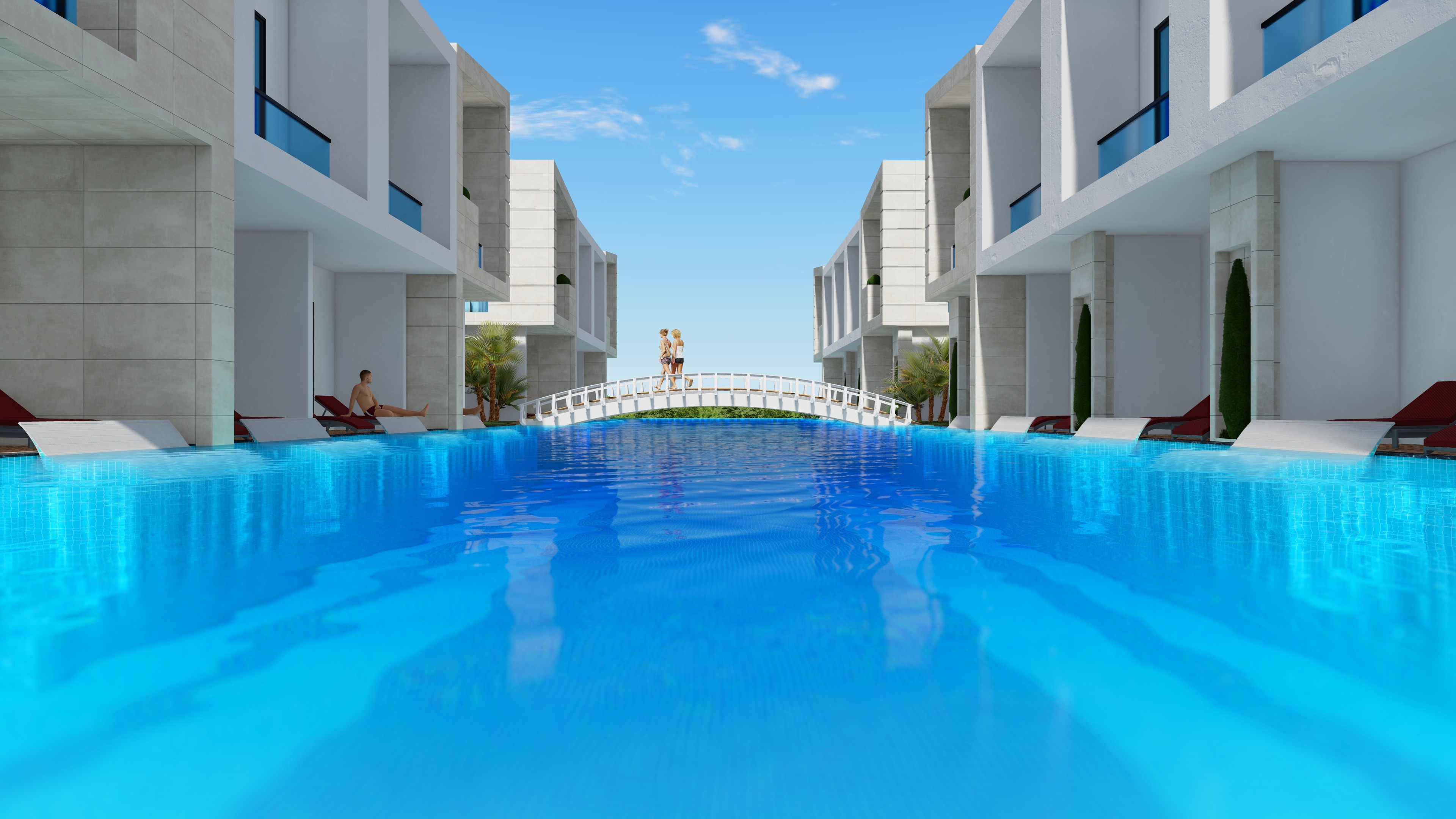 - Нешаблонный дизайн-проект с бассейнами вплотную к балконам.