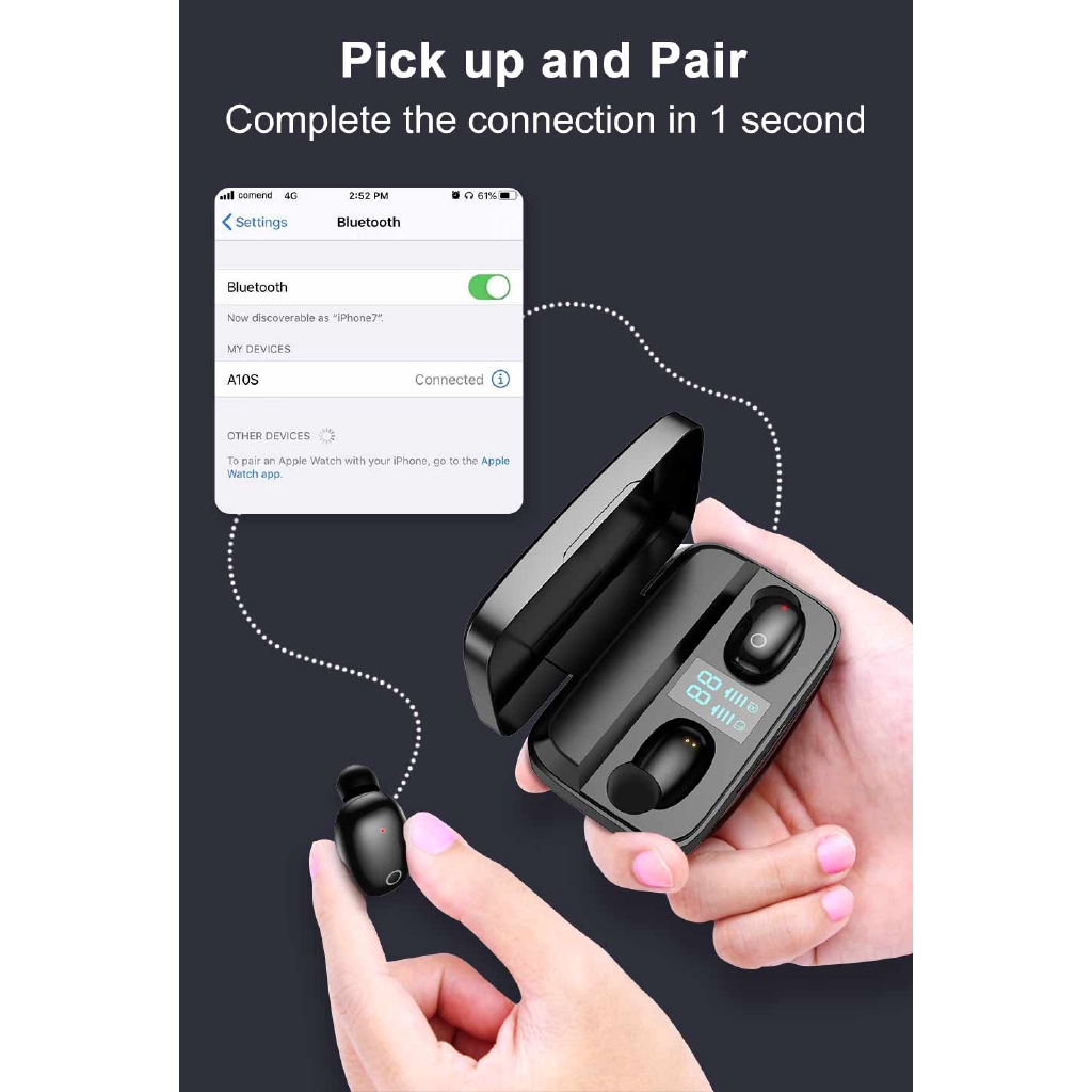 quantité de TWS écouteurs A10S Stereo earbuds Wireless-tws Commander Maintenant Catégories : Électroménager , Informatique , Téléphonie & Tablettes , TV & Electronique