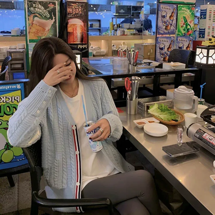 yxhwQFcCДолго искали Early spring net red TB four-bar striped knitted cardigan women's loose and lazy thick needle hole sweater coat, но не могли найти? Предоставляем вашему вниманию Early spring net red TB four-bar striped knitted cardigan women's loose and lazy thick needle hole sweater coat по лучшей цене на рынке!
