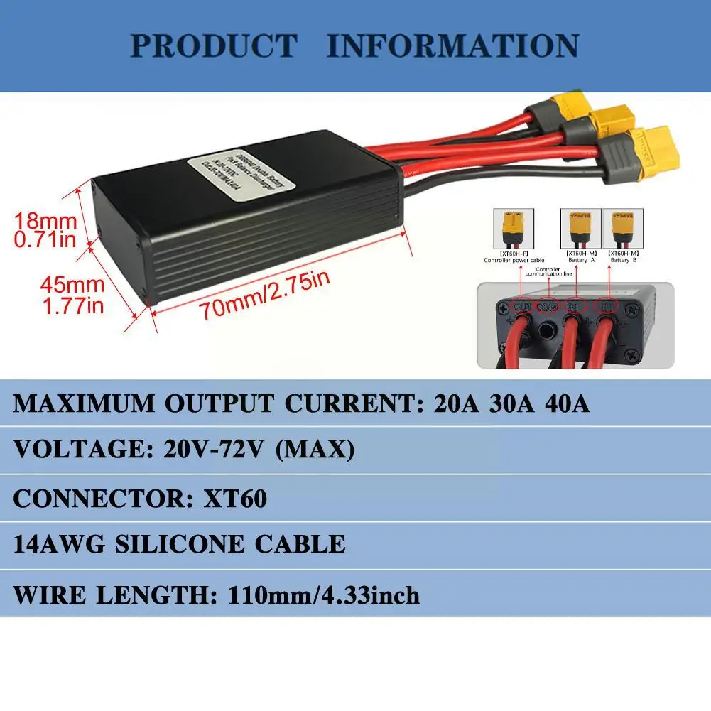 cjDKitiUЗдесь вы сможете купить Ebike Dual Battery Connection Adapter XT60 Switcher Module Battery Increase 20V-72V Capacity Parallel Lithium 20A/30A/40A P K7G7 с бесплатной доставкой до вашего почтового отделения.