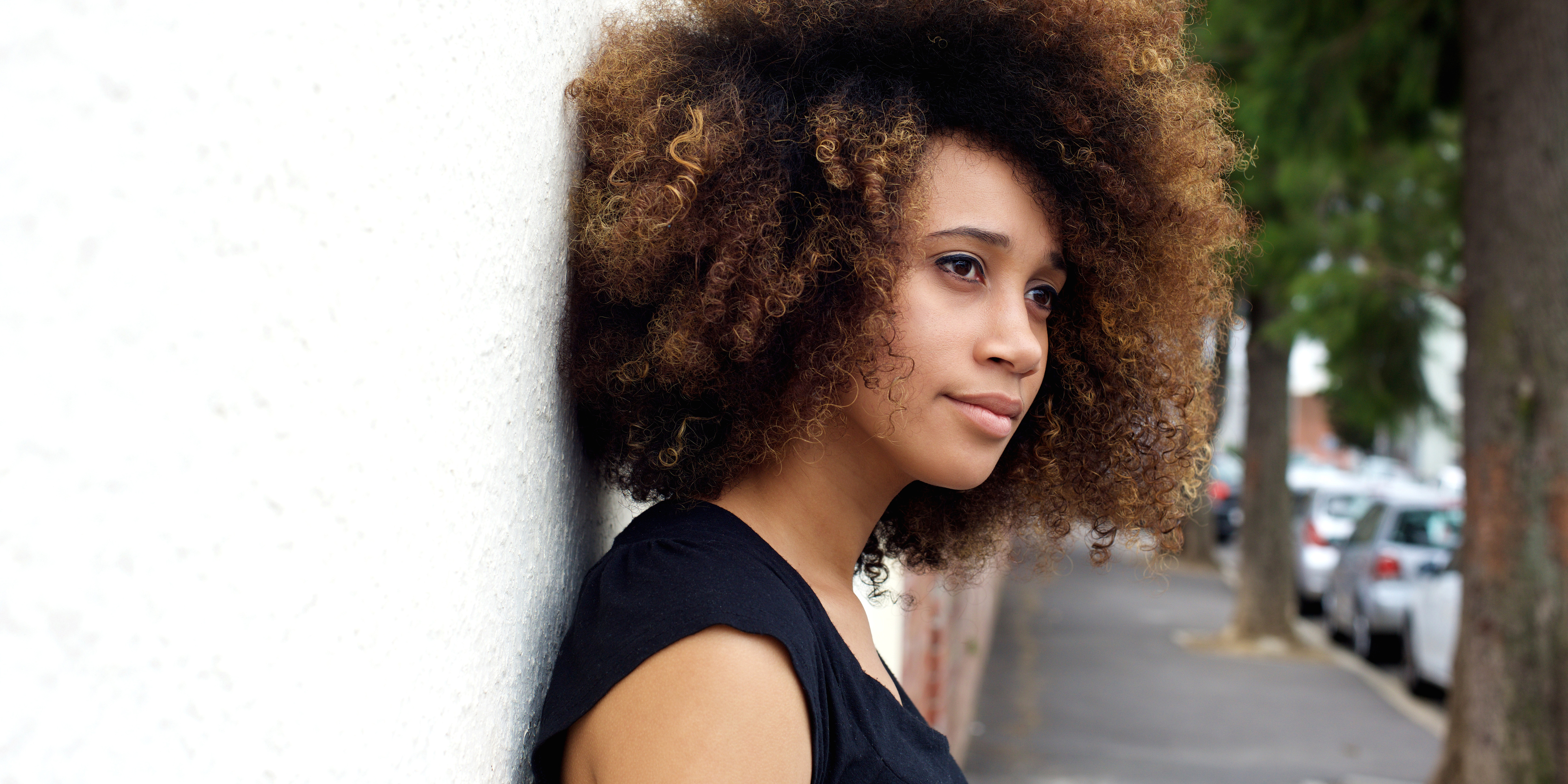 Ebony against the wall