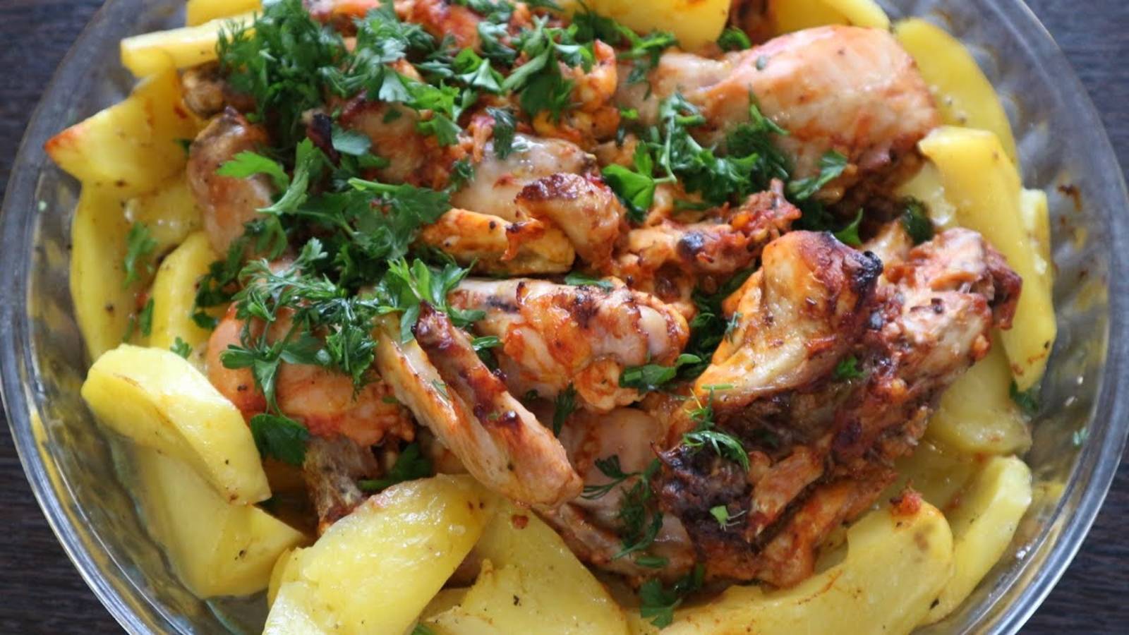 Еда курица с картошкой