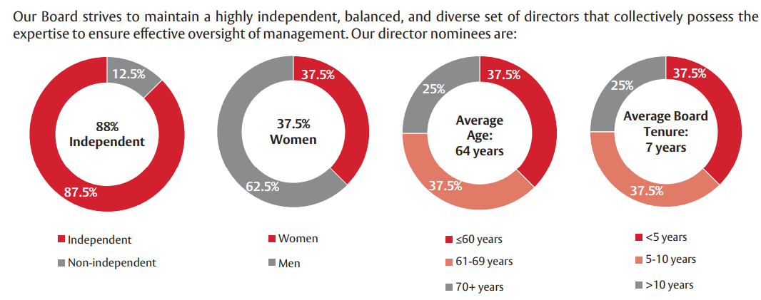 Компания старается поддерживать независимый и разносторонний совет директоров. Включая директоров разного пола, возраста и по сроку пребывания на должности.