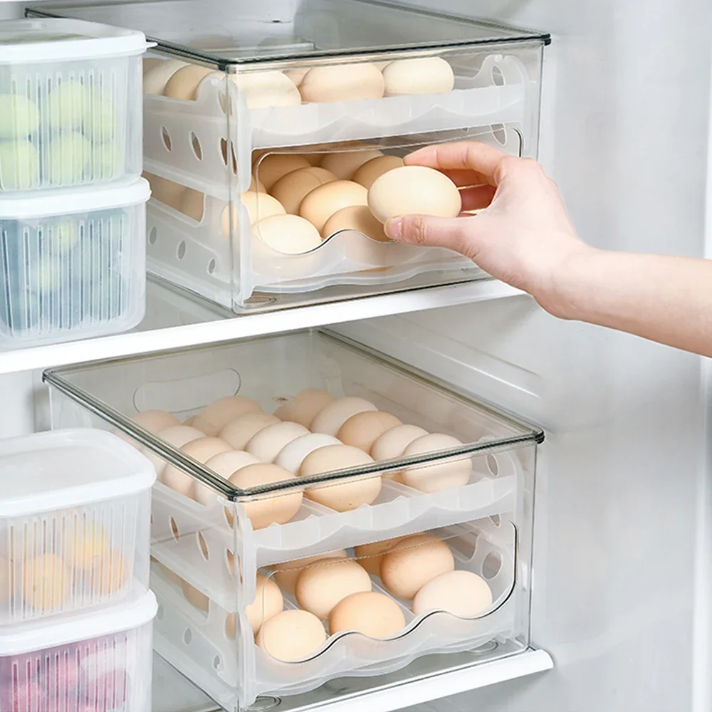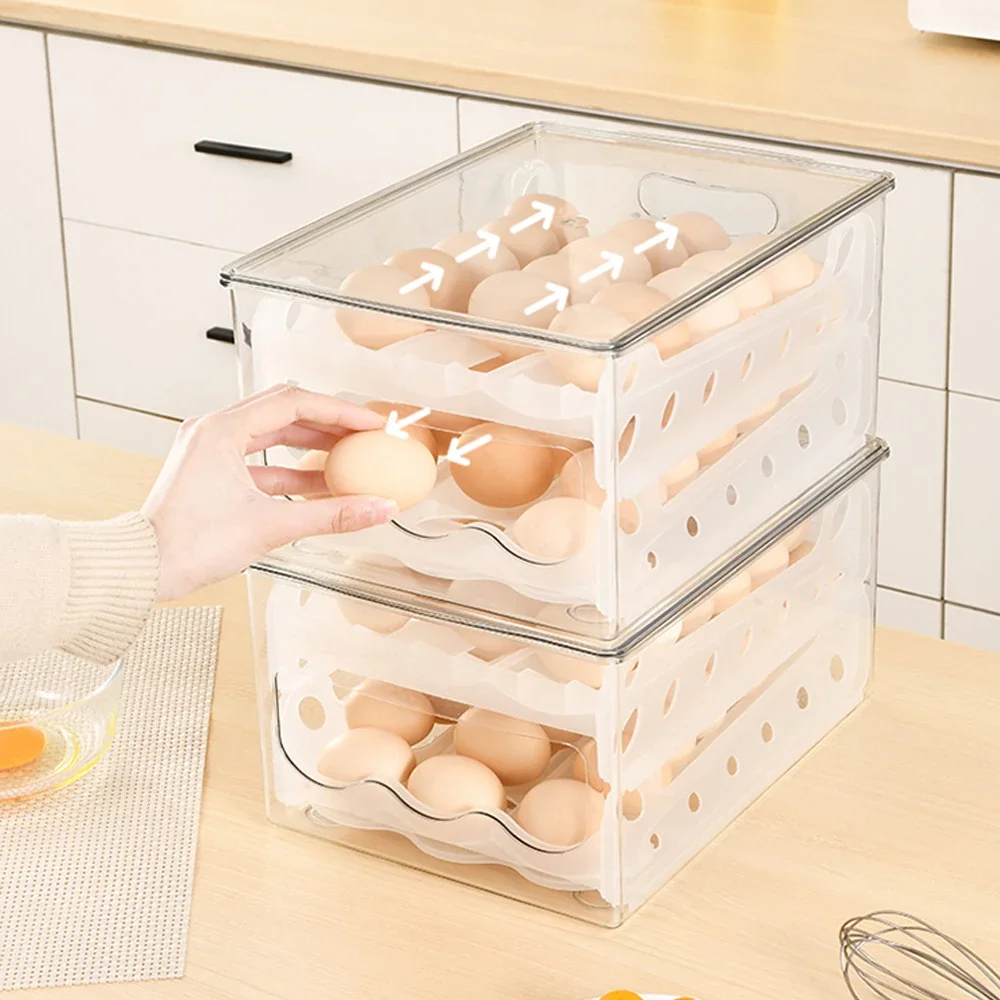 FUypAlSdEHere you can buy Egg Storage Box Auto Slide Type Transparent Crisper Kitchen Refrigerator Drawer Stackable Egg Container Kitchen Organizer with free delivery to your post office.