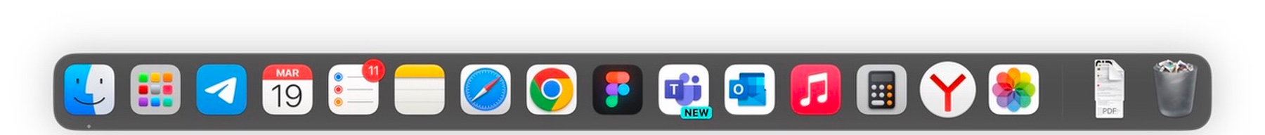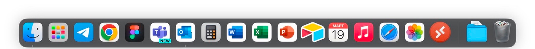 На работе проекты управляются в Джире. Коммуницирую с коллегами в Майкрософт Тимс. Пиксели и прототипы двигаю в Фигме, а презентую дизайны в Павер Поинте. Исследую интернет через Хром (Сафари только на умирающей батарее). Артефакты аккумулирую в Конфлюенсе, Миро, облаке АйДрайв Мелкомягких, а также Аиртейбл, Ексель, Ворд. Почтовый клиент — Аутлук. Для плавности скроллинга включаю мини-десктоп-апку MOS при подключении мыши.