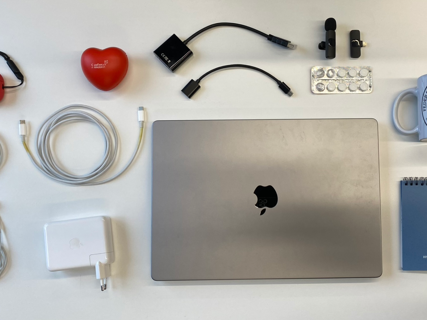 М — минимализм. Макбук и стакан воды. В офисе + наушники. Но это 75% случаев. Когда в офисе примеряю дизайны, то достаю свой большой, тяжелый сенсорный монитор. Дома тоже есть монитор, но без сенсора. Подключаю его на созвонах и вешаю туда людей, а сам смотрю в макбук. Дома еще нравится, что на столе стоят растения — зелено и приятно.