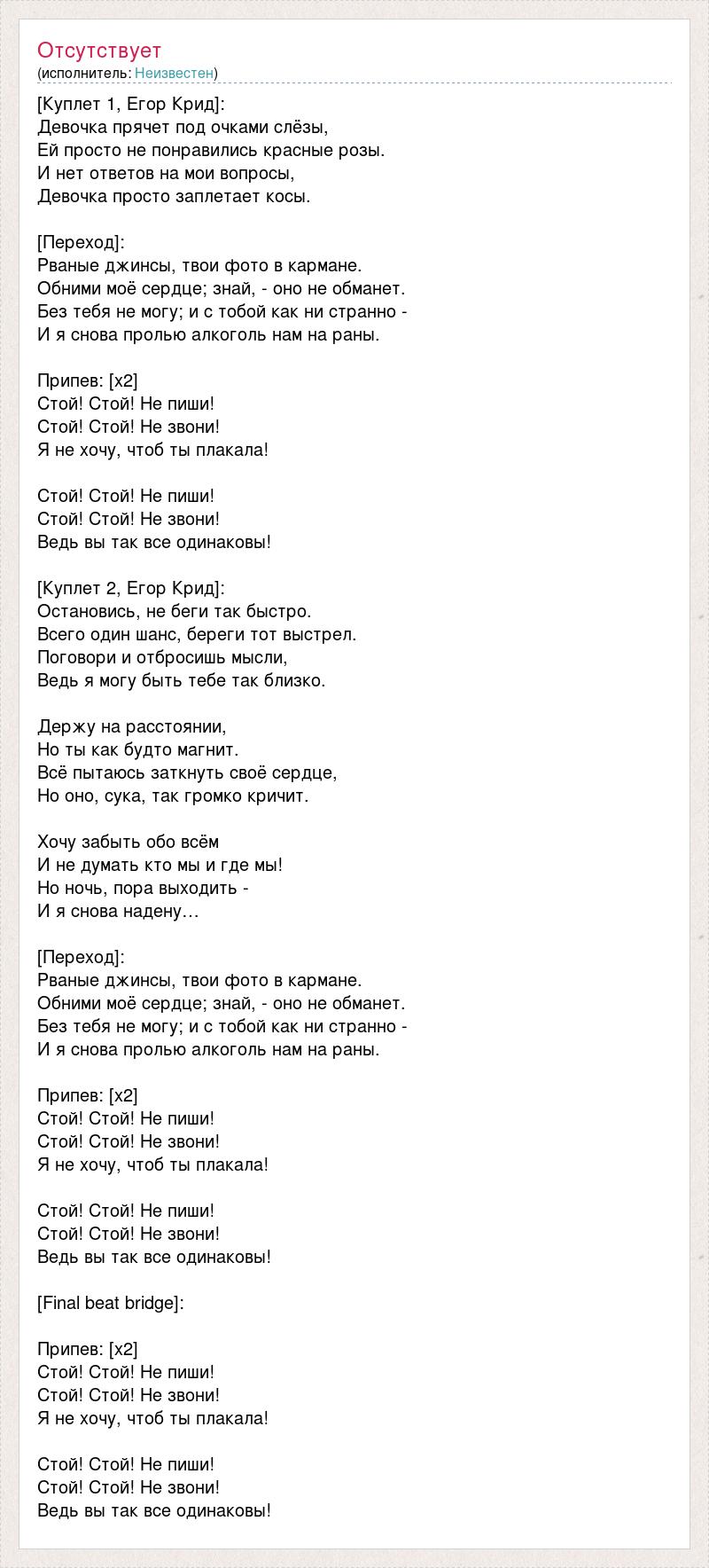 Egor Kreed - Текст песни Девочка с картинки (Devochka s kartinki) . . .