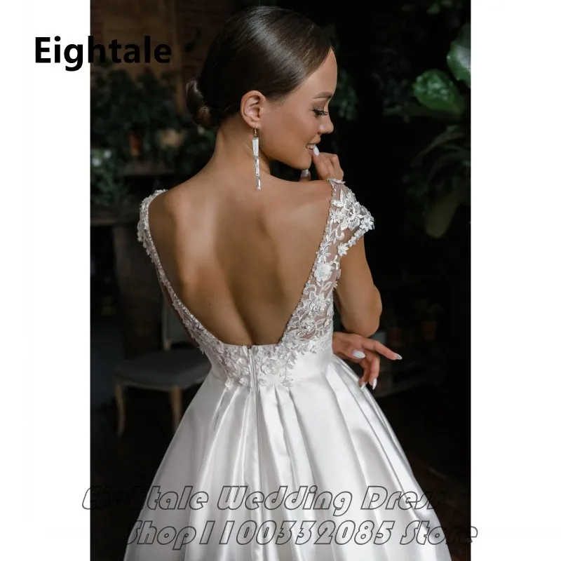 «Eightale Simple A Line Satin Wedding Dress 2022 Sexy Side Slit Open Back Cap Sleeve Deep V Neck Bride Gown With Appliques» по лучшей цене на рынке! Всего за 74$ (7030рублей)