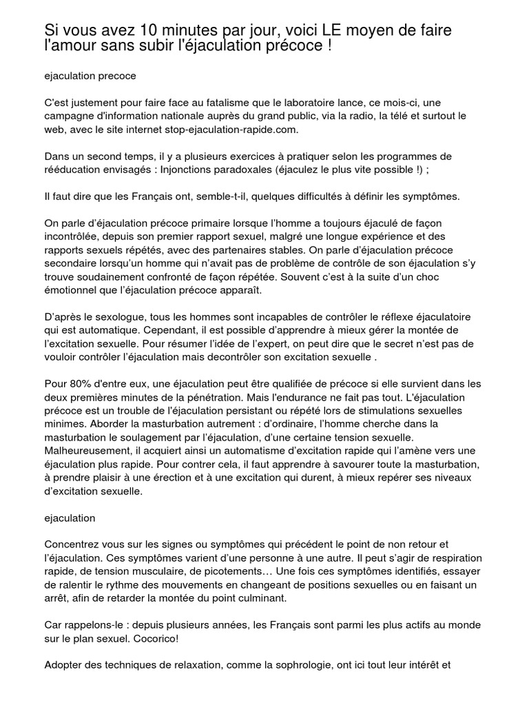 Γjaculation rapide 3 conseils pour durer plus longtemps . . .