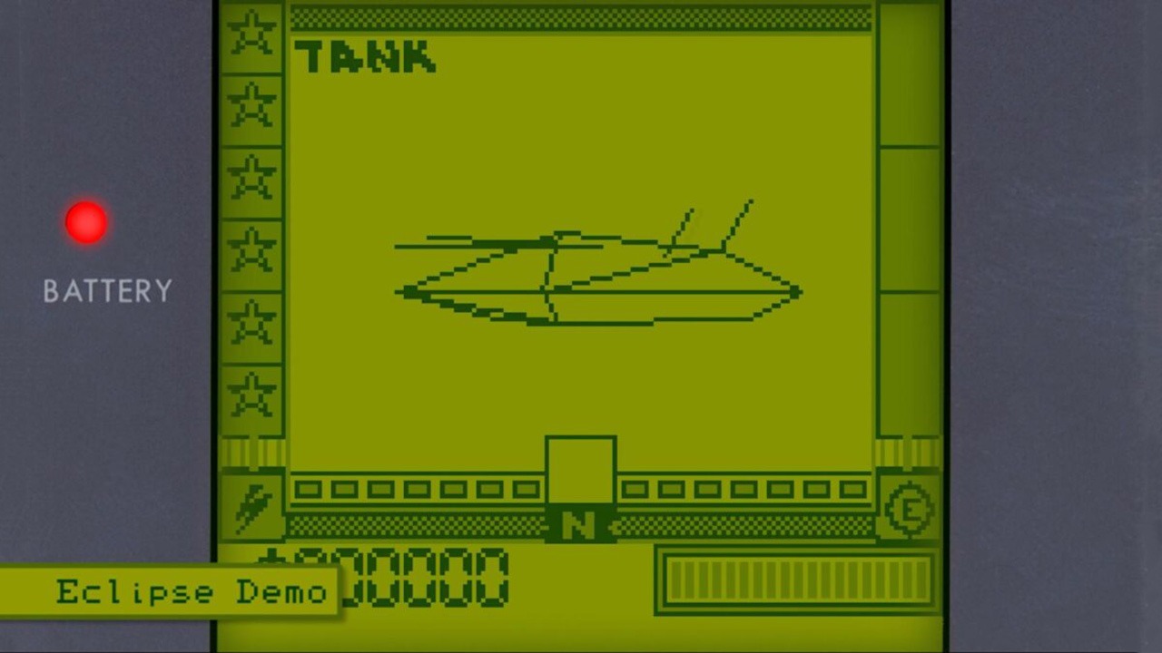 Вскоре демо игры было закончено и получило название Eclipse. В основе игрового процесса лежали два геймплейных цикла, первый — это танковый симулятор от первого лица, в котором игрока помещают в 3D-пространство, где, согласно цели миссии, требовалось уничтожать инопланетные корабли, а также собрать энергетические кристаллы, которые необходимо вернуть в конце миссии на базу. В процессе игры вам нужно следить за уровнем топлива, количеством ракет и урона, который получил ваш танк, т.к. состояние машины сохраняется при переходе от миссии к миссии. Единственной возможностью восполнить запасы топлива, снарядов и «здоровья» вашего танка является продажа на базе драгоценных энергетических кристаллов. Второй геймплейный цикл представлял собой, по сути, туннели с препятствиями, пролетая которые за определенное время вы переходите к следующему уровню. Помимо этого, в демо версии присутствовала галерея трехмерных моделей вражеской техники, модели можно было вращать и масштабировать.