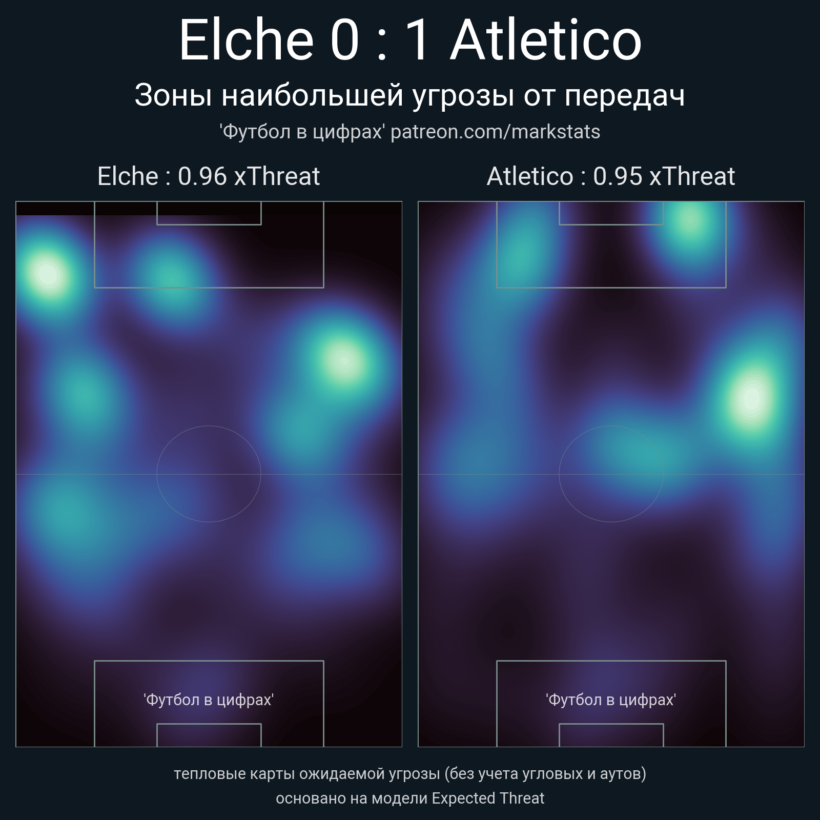 ▪ xThreat без учета угловых: 0.96 - 0.95