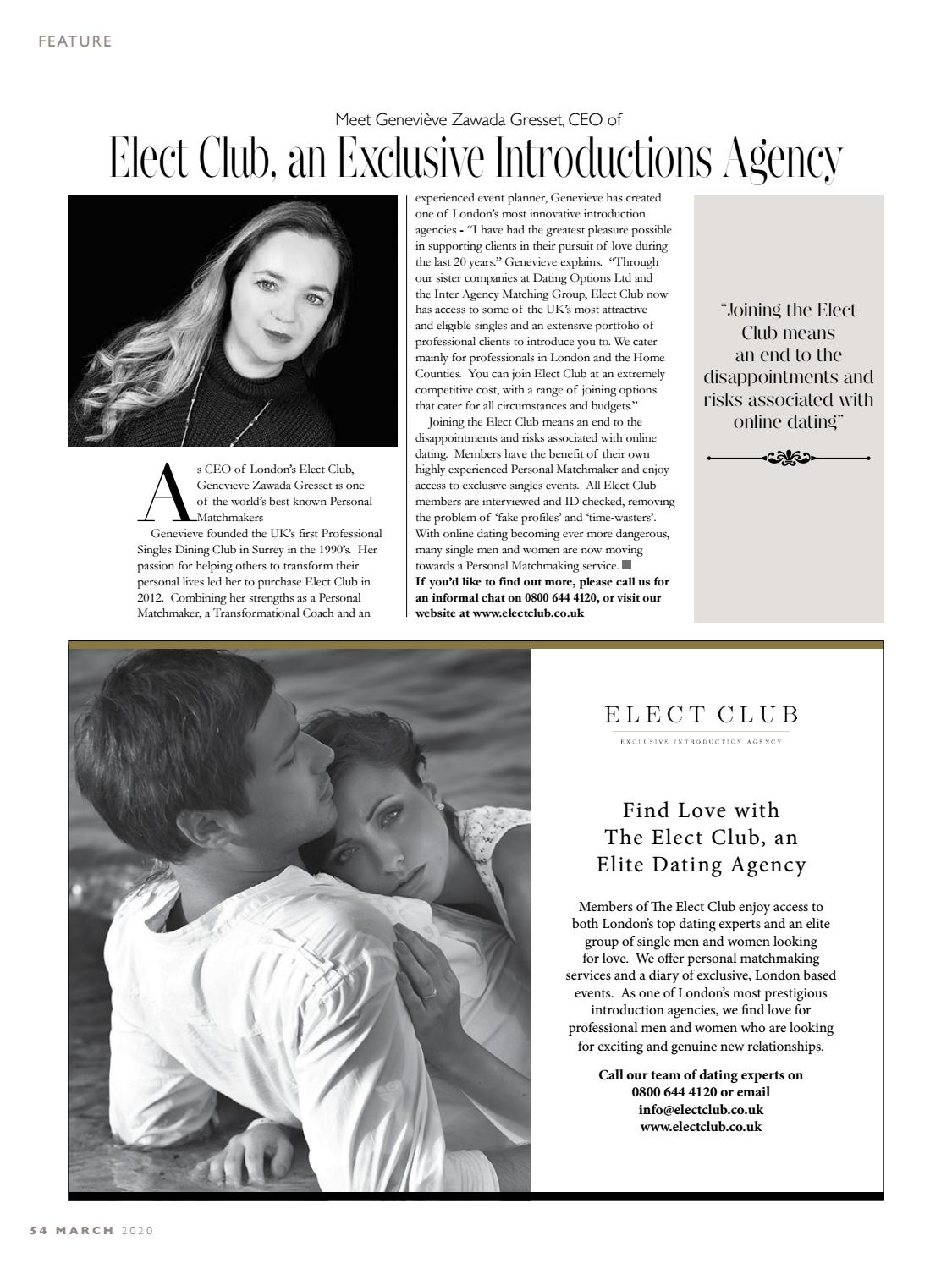 Professional Dating Agency . Elect Club is an agency that concentrates on introducing attractive, intelligent, professional people to others of a similar calibre and background . We are an agency for busy high-fliers, who want to live life to the full and enjoy a meaningful, long term relationship . Our clients are leading busy and dynamic lives . . .