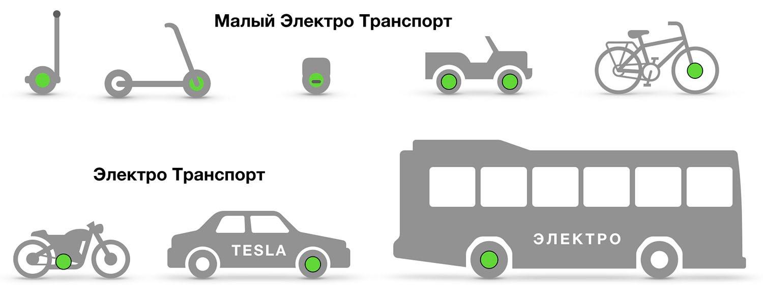 Почти весь электротранспорт от детского электросамоката до электробуса...