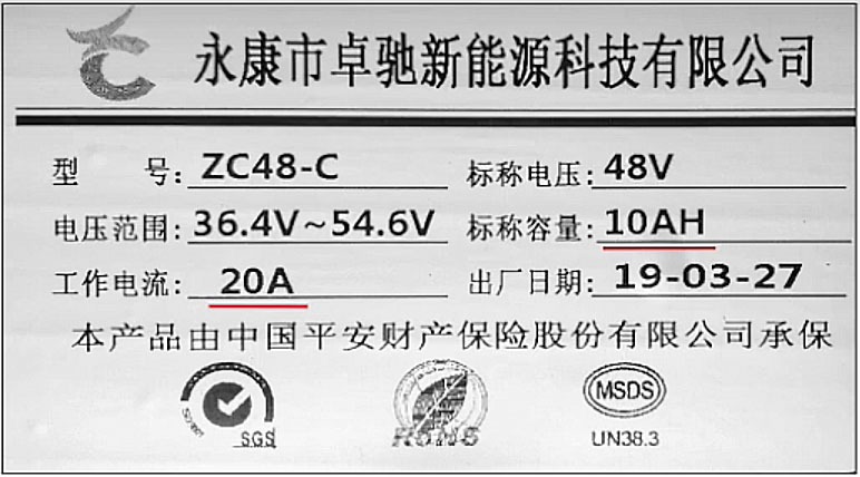 🔹 Напряжение. Обозначается в вольтах латинской буквой V. Это главный параметр аккумулятора. Если вы установите аккумулятор на ЭТ рассчитанного на более низкое напряжение, то контроллер и другие электрические части могут сгореть. Как мы рассматривали ранее, на этикетке может стоять обозначение 12, 24, 36, 48 и тд.