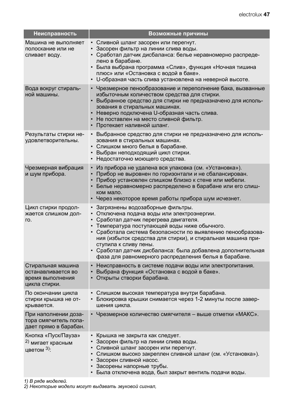 Electrolux сброс ошибок