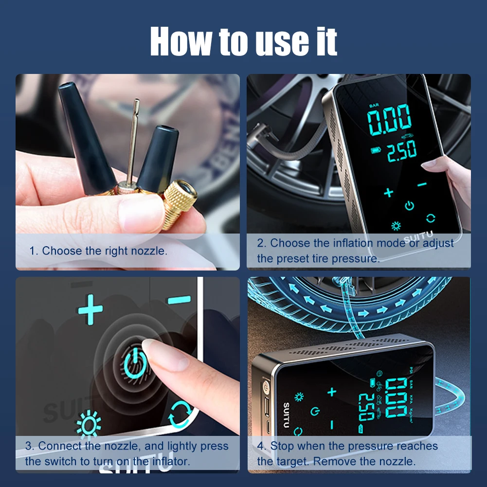 BZQQnUmSVBHere you can buy Electronic 1800MAH Car Motorcycle Bicycle Inflator Air Compressor Car Tire Inflator Pump LCD Display Smart Air Compressor with free delivery to your post office.