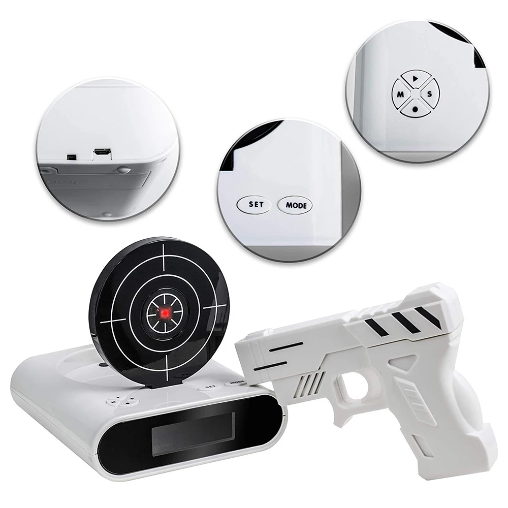trwkmOmLVHere you can buy Electronics Desk Clock Digital Gun Alarm Clock Gadget Target Laser Shoot For Children Alarm Clock Table Awakening with free delivery to your post office.