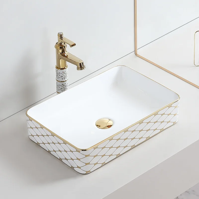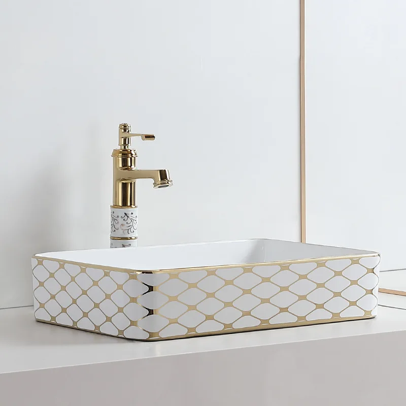 jvFCbOIFHere you can buy Electroplated Golden Pattern Wash Basin Ceramic Table Basin Rectangular Oval Washbasin Hotel Engineering Home with free delivery to your post office.