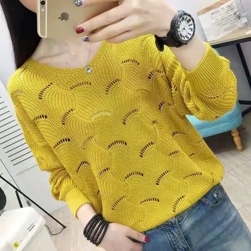 «Elegant All-match Solid Color Hollow Out Knitted Jumpers Women Spring Autumn Fashion O-Neck Long Sleeve Commuter Thin Sweaters» по лучшей цене на рынке! Всего за 17$ (1615рублей)