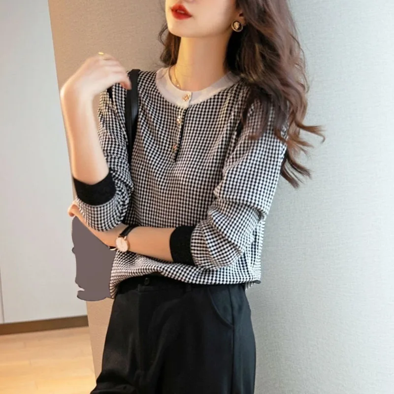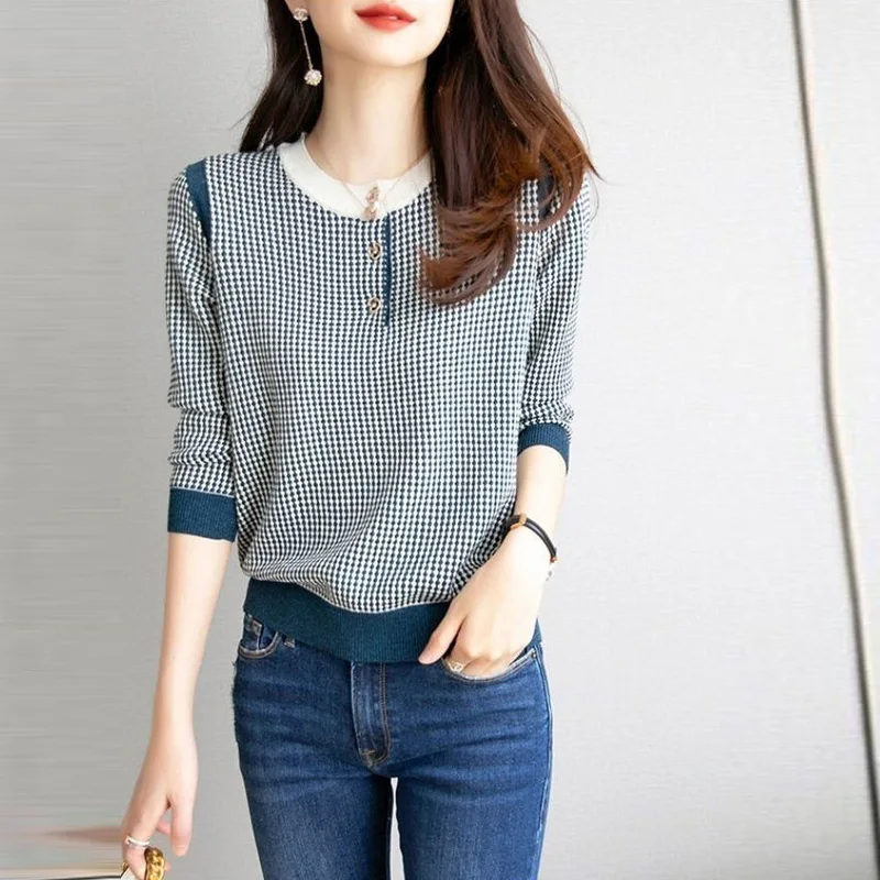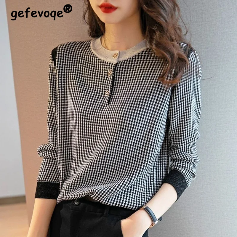 «Elegant Chic Buttons Houndstooth Jacquard Knitted Sweater Women 2022 Autumn Winter Korean Street Pullovers Slim Basic Top Female» по лучшей цене на рынке! Всего за 19$ (1805рублей)