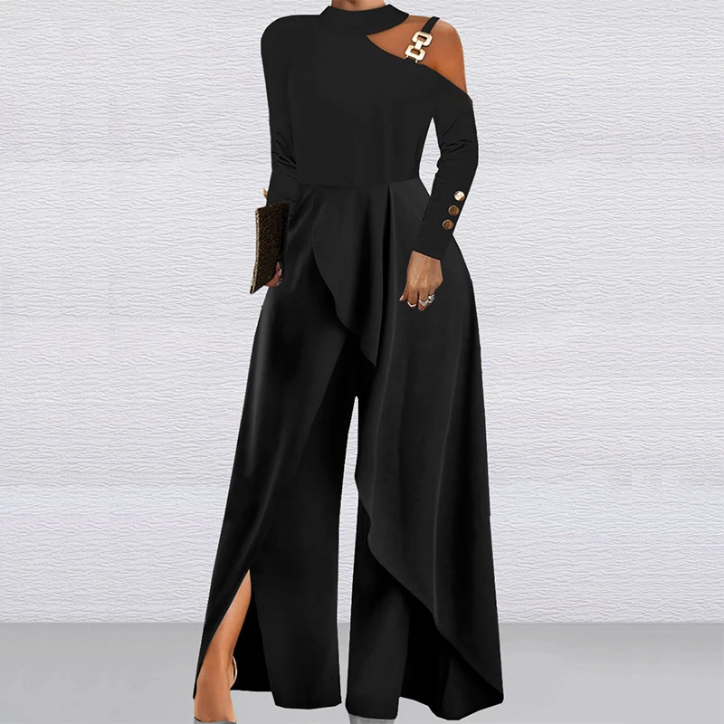 zcQkKfjWHere you can buy Elegant Slant Neck Off Shoulder Jumpsuits Fashion Chain Splicing Waisted Playsuit Spring Solid Color Irregular Wide Leg Romper with free delivery to your post office.