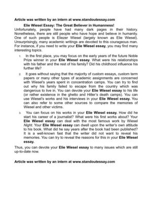Elie Wiesel Essay | Bartleby