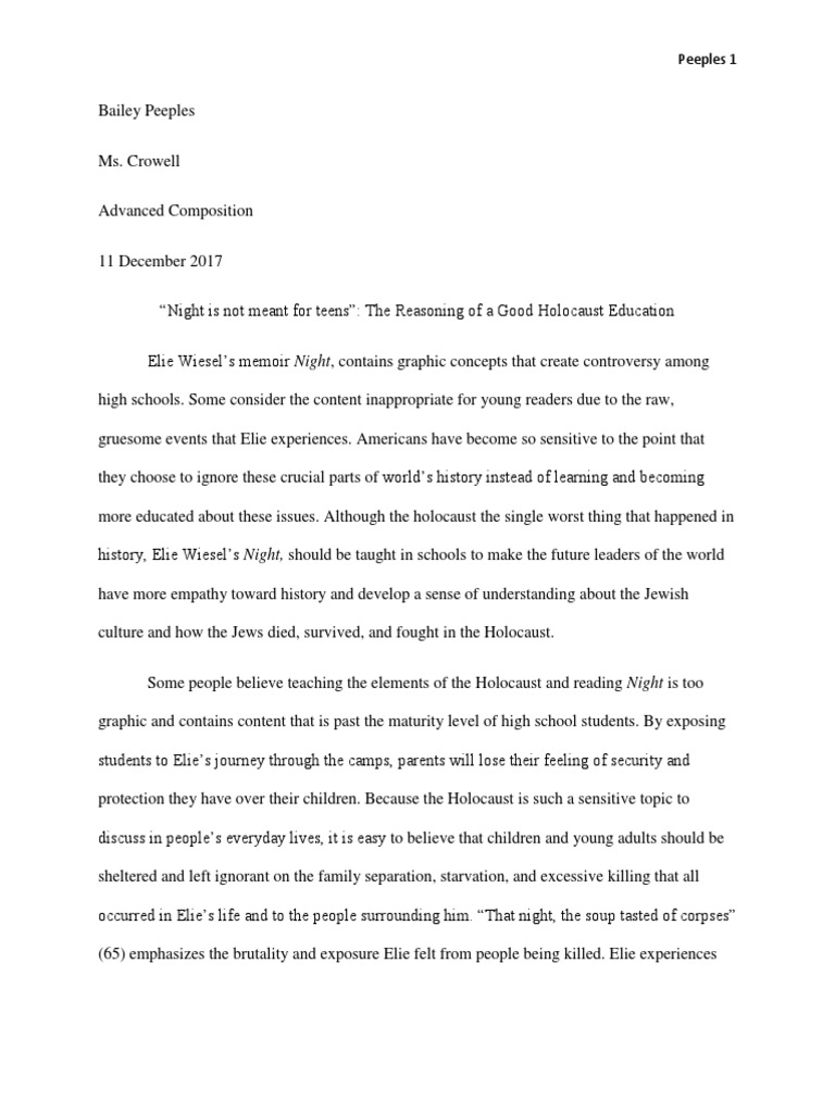 Elie Wiesel Essay Night - 995 Words | Bartleby