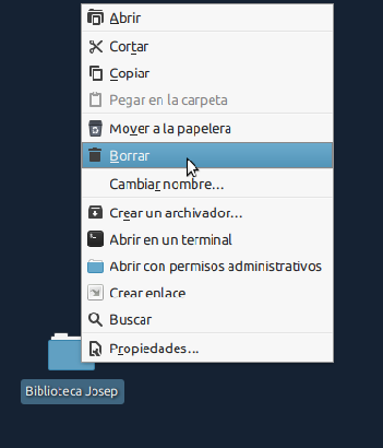 click con el botón izquierdo., en la biblioteca en que se está, en eliminar biblioteca y en la biblioteca que se quiere eliminar.