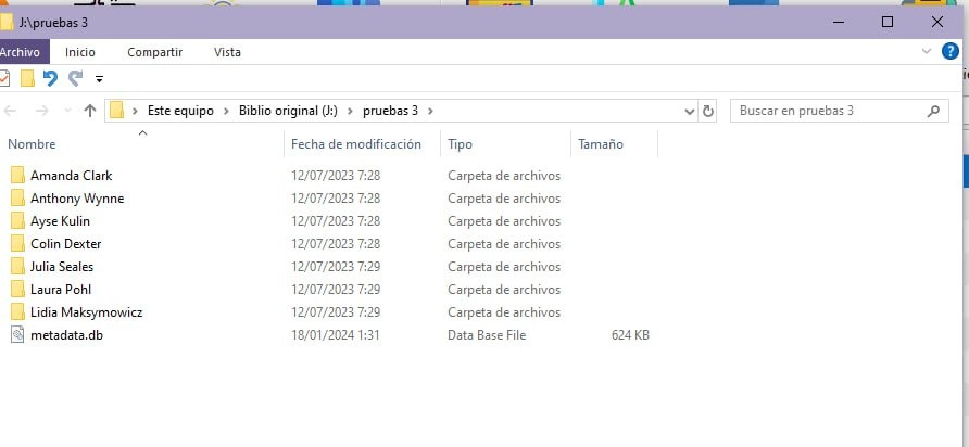 03) se nos abrirá la carpeta (abierta) donde teníamos todos los libros de la biblio que hemos eliminado de calibre (hemos eliminado la biblio de calibre, pero no los libros de las carpetas donde estaban).