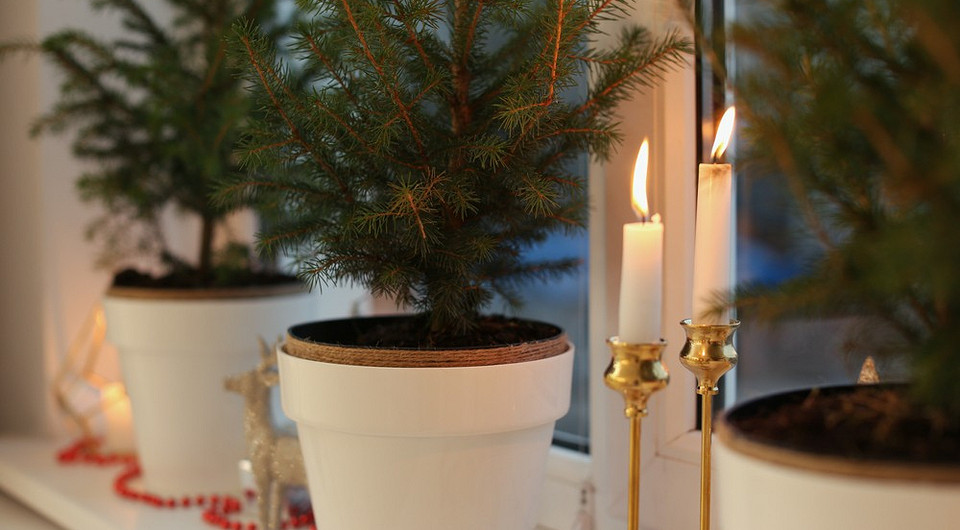 Елка в доме в горшке