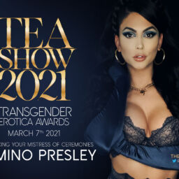 New Girl, Ella Hollywood is bound in rope bondage, standing with one leg suspended and her arms tied behind her back. Sheβs wearing a fence-net body suit and a latex corset with a bright red ball-gag in her mouth. With her cock already hard, she waits for her Dom, Sebastian Keys to come have his way with her. She was caught pleasuring her cock and Sebastian is punishing her for being a greedy whore. He spanks her ass and explains what sheβs done wrong. He pinches her pierced nipples and slaps her tiny tits. He jerks her hard cock and then gets on his knees and sucks it. Sebastian whips Ellaβs hard cock with a leather flogger. He turns her around flogs her ass and back. He puts the flogger down and picks up a violet wand; an electric glass toy that electrifies the skin when dragged across it. He turns it on and drags it down Ellaβs tits and it buzzes and sparks. The glass wand makes its way down to her ass and Sebastian turns it off and slides it inside her hole. He flips the switch back on and blue sparks shoot out of her asshole. Her eyes get wide and she screams as Sebastian fucks her with the electrified glass. In the next scene, Ella is on all fours on top of a leather padded box. She pleasures Sebastianβs cock and he slaps her ass while he fucks her face. He tells Ella to turn around and he rips a hole in her fence net suit to get access to her pretty little asshole. He shoves his cock inside of her and fucks her hard. He turns her over and fucks her asshole while he strokes her aching dick. She cums hard from the hard fucking and Sebastian shoots a fat load on her tits and cock.
