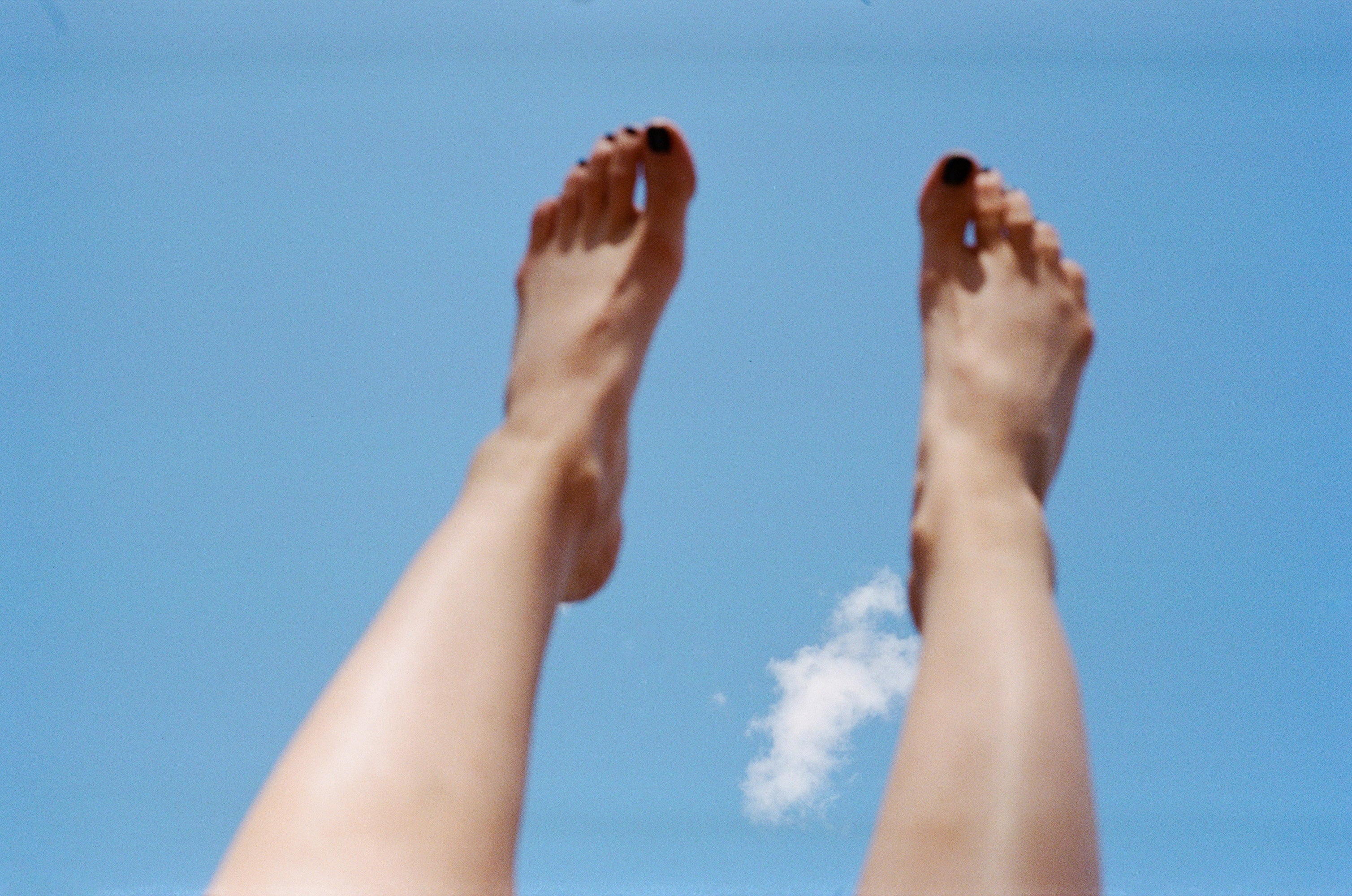 Ella poses her bare feet and soles during a sunbath