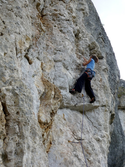 Elle grimpe sur cette queue bien raide