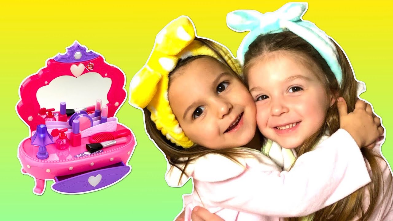 Elya and Little Rita are playing with toys