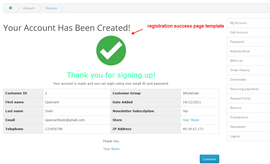 Email for registration