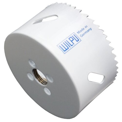 Couronne bimétallique WILPU 30/83 83 mm (grande dent) pour bois et métal HSS bi-métal Cobalt, art. 3008300101 Dents à pas variable. Teneur en cobalt 8 % - offre une résistance élevée à l'usure même à des charges et des couples élevés. Longue durée de vie même lors du travail avec des matériaux très durs. La coupelle massive élimine le faux-rond radial. Notamment pour le bois, les plaques de plâtre, les métaux non ferreux, l'aluminium, l'acier, y compris l'acier inoxydable, d'une épaisseur supérieure à 1 mm. Fabriqué en Allemagne (Wilhelm Putsch GmbH). Paramètres techniques : Matériau : acier allié bimétallique rapide de haute qualité (HSS Bi-Metall). Dents/pouce : 4/6. Diamètre : 83 mm. Profondeur de coupe maximale : 38 mm. Application des couronnes WILPU : Sur perceuses stationnaires ; Sur les tours ; Perceuses électriques portatives avec le nombre de tours approprié (tableau en photo) et une puissance suffisante. Recommandations lors de l'utilisation de couronnes : Pour augmenter la durée de vie et la résistance à l'usure de la lame de scie, il est recommandé d'utiliser un refroidissement local. Pour l'acier et les métaux - huile lubrifiante de haute qualité (liquide de refroidissement) ; Pour l'aluminium - kérosène ; Pour le plastique et le plexiglas - eau. Accessoires pour mèches de scie : Supports : ZE 4 Art. 3030400001 tige hexagonale 11 mm, foret 6,3 mm / 83 mm. ZE 4A Art. 3030800001 tige hexagonale 9,5 mm, foret 6,3 mm / 83 mm. ZE 5 Art. 3030500001 support à serrage rapide 11 mm, foret 6,3 mm / 83 mm. ZE 7 Art. 3030700001 Queue SDS+, foret 6,3 mm / 83 mm. Supports à dégagement rapide Re-Load : ZE 10 Art. 3031500001 pour tous les diamètres 14-250 mm (avec adaptateurs), tige hexagonale 9,5 mm. Jeu d'adaptateurs pour Re-Load : RLAS 1 Art. 3043300005 (jeu 2x14-30 mm, 3x32-250 mm). RL B32-210L Art. 3043500001 (adaptateur pour trous expansibles, 1x32-250 mm). Extensions pour les titulaires : ZEV 9.5 Art. 3040200001 (rallonge pour supports ZE 2, ZE 4A, ZE 8). VZE 11 Art. 3040100001 (rallonge pour supports ZE 3, ZE 4, ZE 5). Forets à centrer : ZEB1 Art. 3041000001 (foret à centrer 83 mm, diamètre 6,3 mm). ZEB2 Art. 3041100001 (foret à centrer 102 mm, diamètre 6,3 mm).