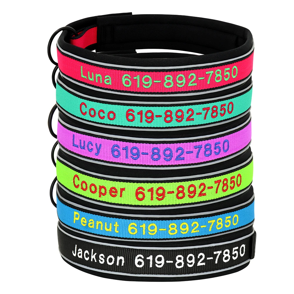 Embroidered Dog Collar Personalized Name&Phone Reflective Nylon Dogs ID Collars Anti-lost for Small Medium Large Dogs Adjustable - Купить с бесплатной доставкой