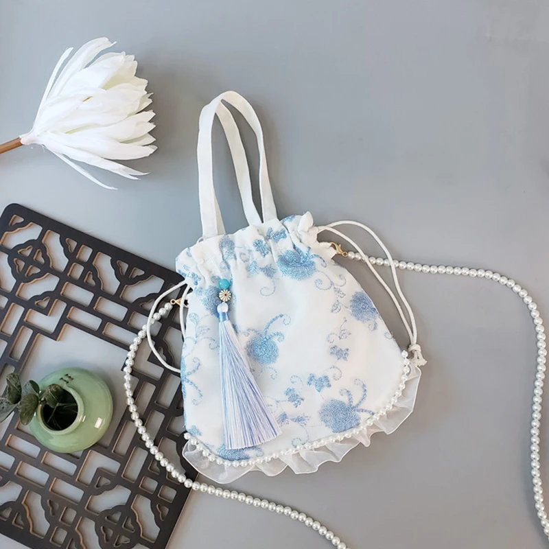 Embroidery Pearl Chinese Style Summer Bag Ancient Purse Ruffle Handbag Wallet Tassel Drawstring Fairy Inclined Span Bag - Купить с бесплатной доставкой