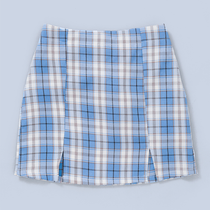 W centrum handlowym niebieska sukienka
