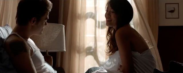 Blonde with strap on pounds brunette in bed