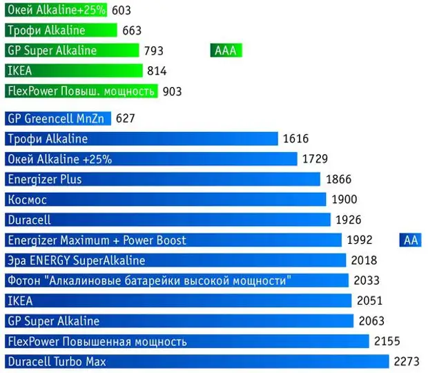 Емкость щелочных батареек