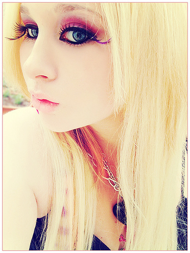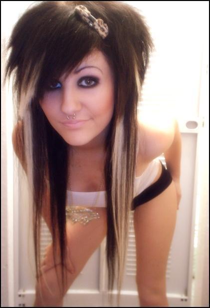 An emo girl has very dark hair, either cut somewhere around their shoulder, or in the classic emo haircut, which is sort of short and spiky in the back with long sweeping bangs in the front. Their hair has to be very dark brown or black, or in some cases very light blonde as long as the cut is right. No matter what, it must be worn so that it is covering part of their face at all times. This is because emo girls tend to be shy and mysterious and don’t really want their face to show too much. They usually wear a lot of dark eyeliner and tend to have washed out skin.