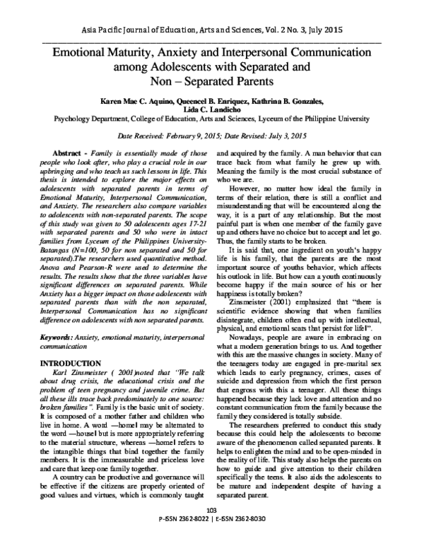 Teenagers Emotional Maturity In Dating