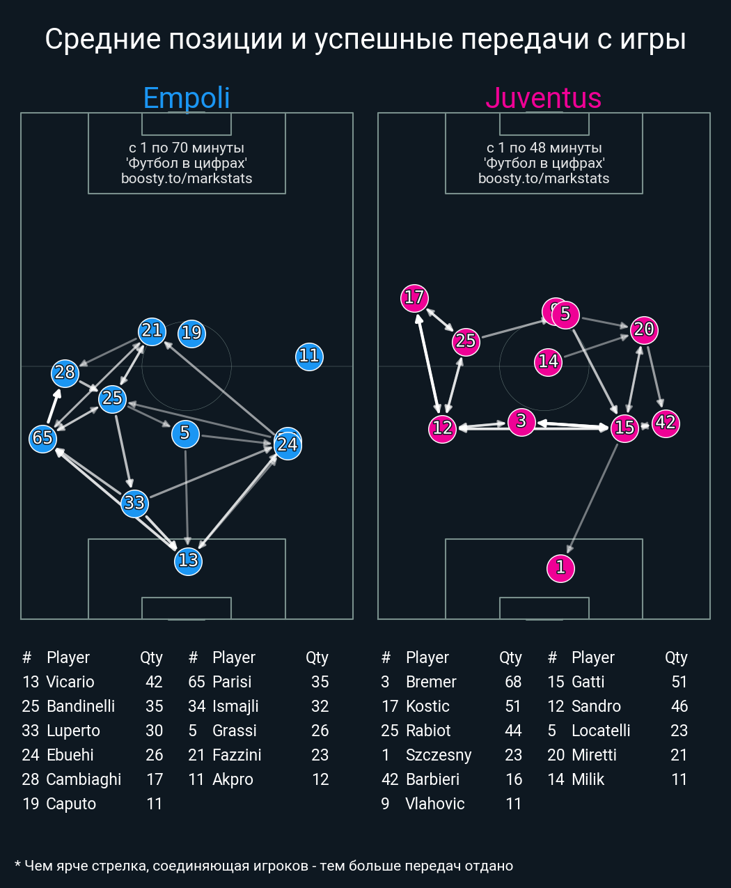 13 успешных передач из 17 попыток (2 под удар, 3 с продвижением, 4 на трети соперника)