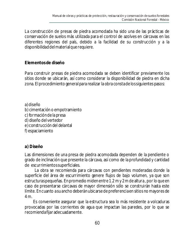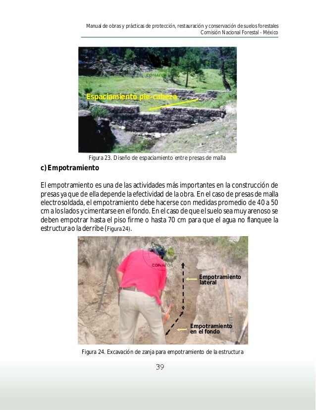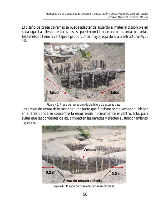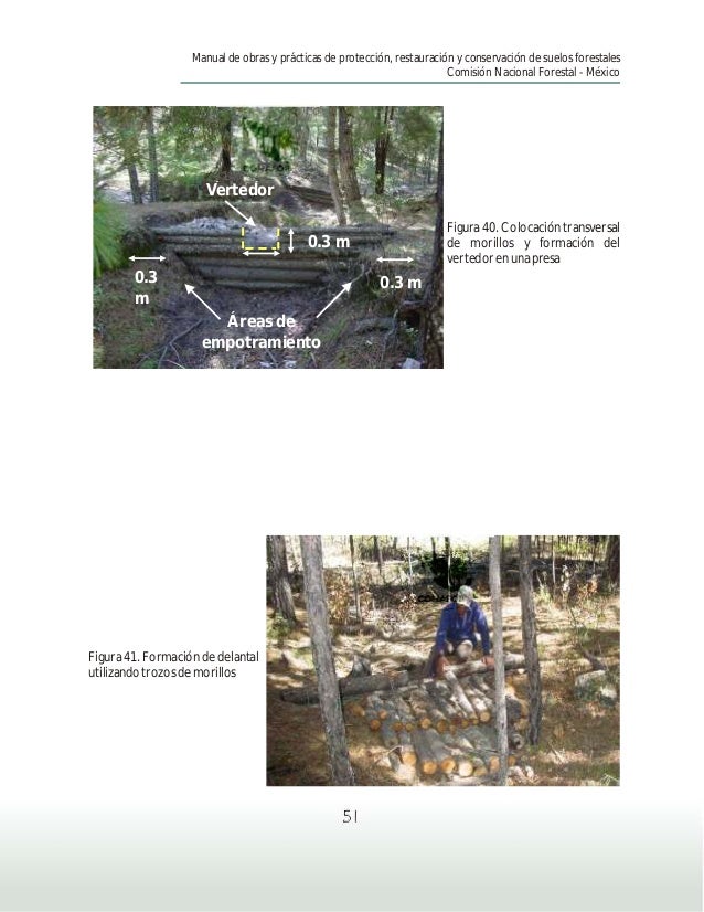 Comisión Nacional Forestal Atentamente . . . empotramiento al menos a 0 .05m de profundidad, construcción de la barrera, trazo y marcado de la curva a nivel . Acordonamie nto de Material Vegetal Muerto 4 .57 m El acomodo de material muerto debe estar reforzado