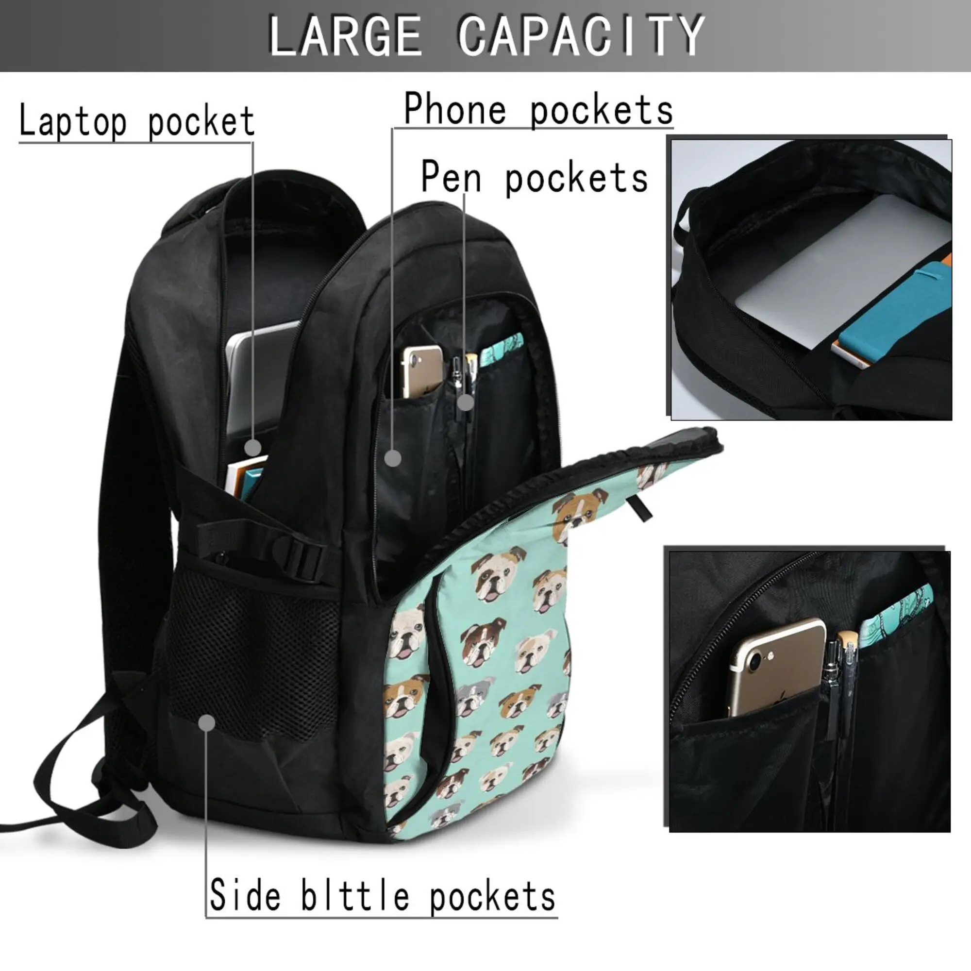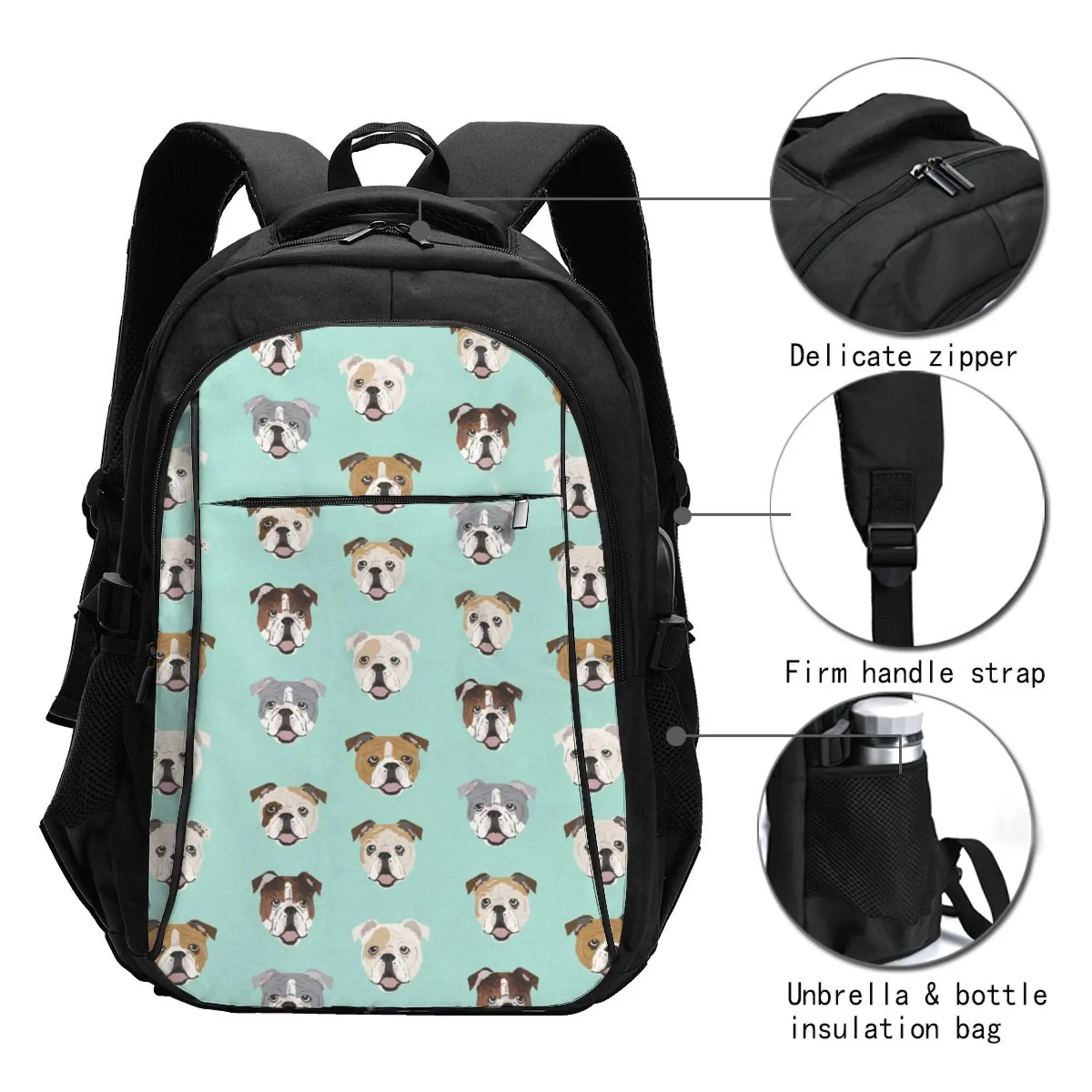 qabMVORZHere you can buy English Bulldog Large Capacity School Backpack Notebook Fashion Waterproof Adjustable Travel Sports Backpack with free delivery to your post office.