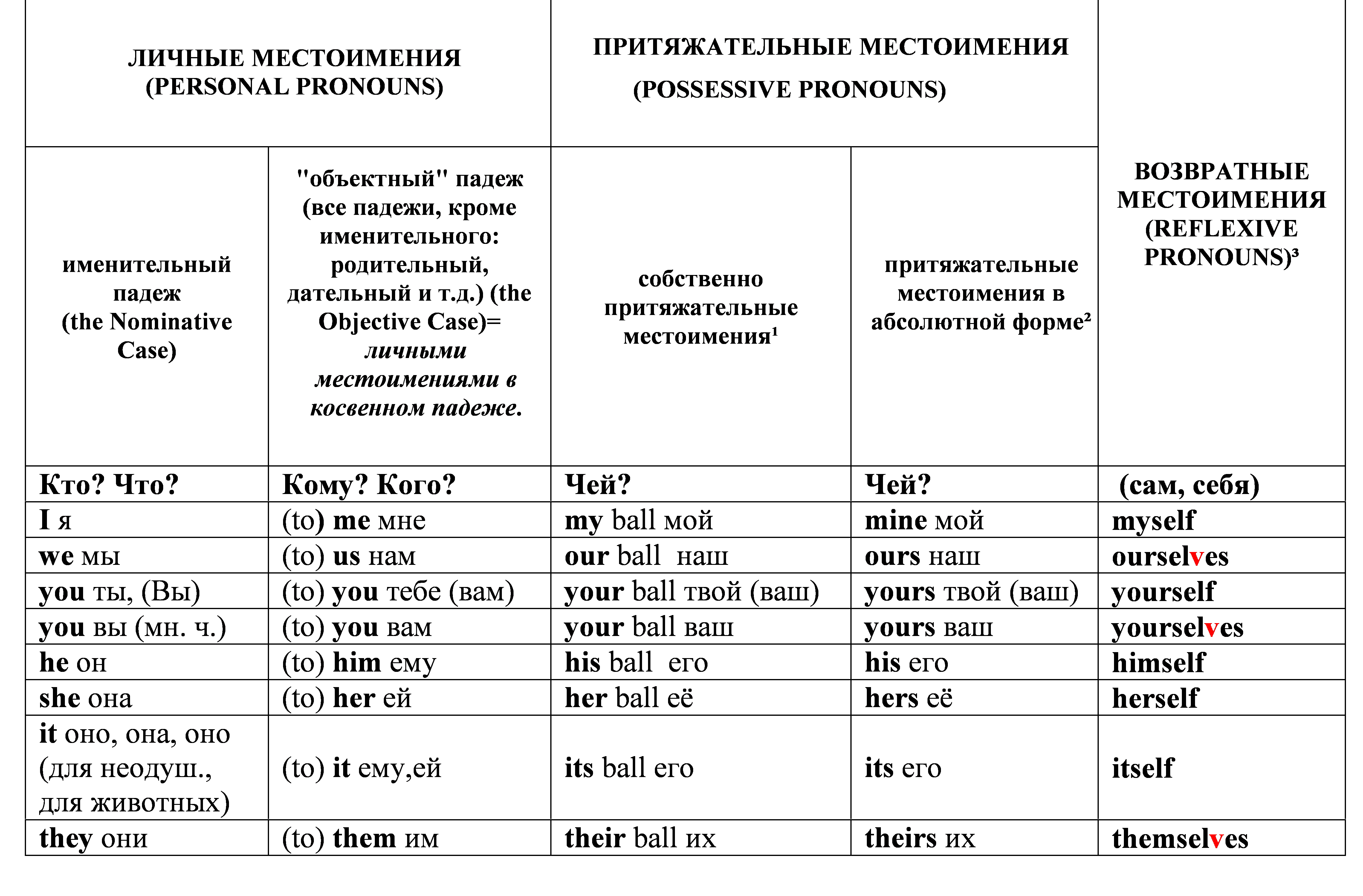 English pronouns таблица