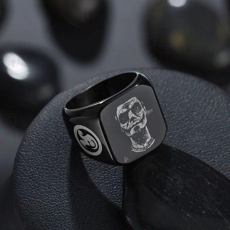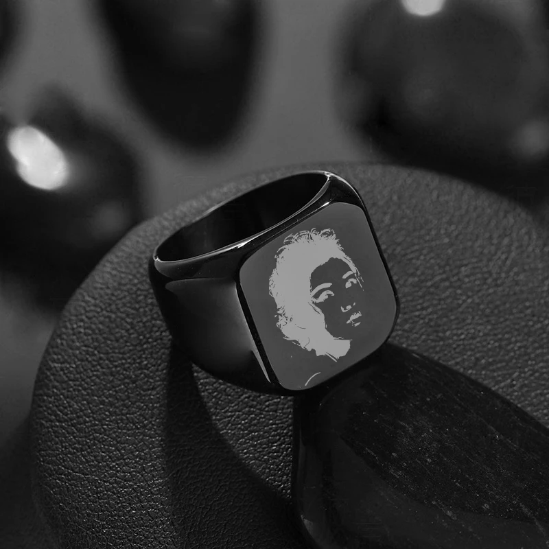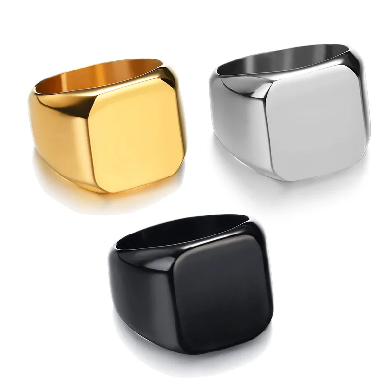 Engraving Custom Rings Simple Inscription Men's Stainless Steel Fillet Large Square Laser Engraver Name Personalized - Купить с бесплатной доставкой
