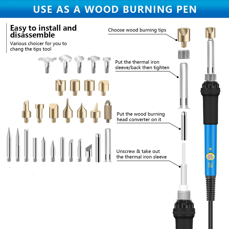 Engraving Pen Wood Burning Kit Carving Pyrography Set Adjustable Temperature Soldering Iron Heat Transfer Gourd Engraving Tool - Купить с бесплатной доставкой