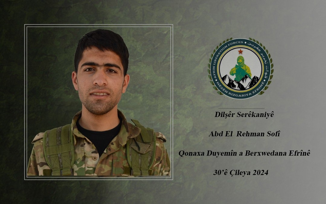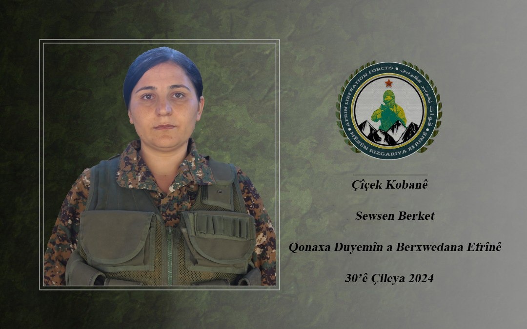 ❑ مشخصات ۵ مبارز نیروهای رهاییبخش عفرین/HRE با نامهای جودی گابار، جودی رشو، چیچک، ژیان و دلشیر که در عملیات روستای باسل عفرین به شهادت رسیدند، اعلام شد. در این عملیات بیش از ۲۰ اشغالگر دولت ترکیه کشته شدند.